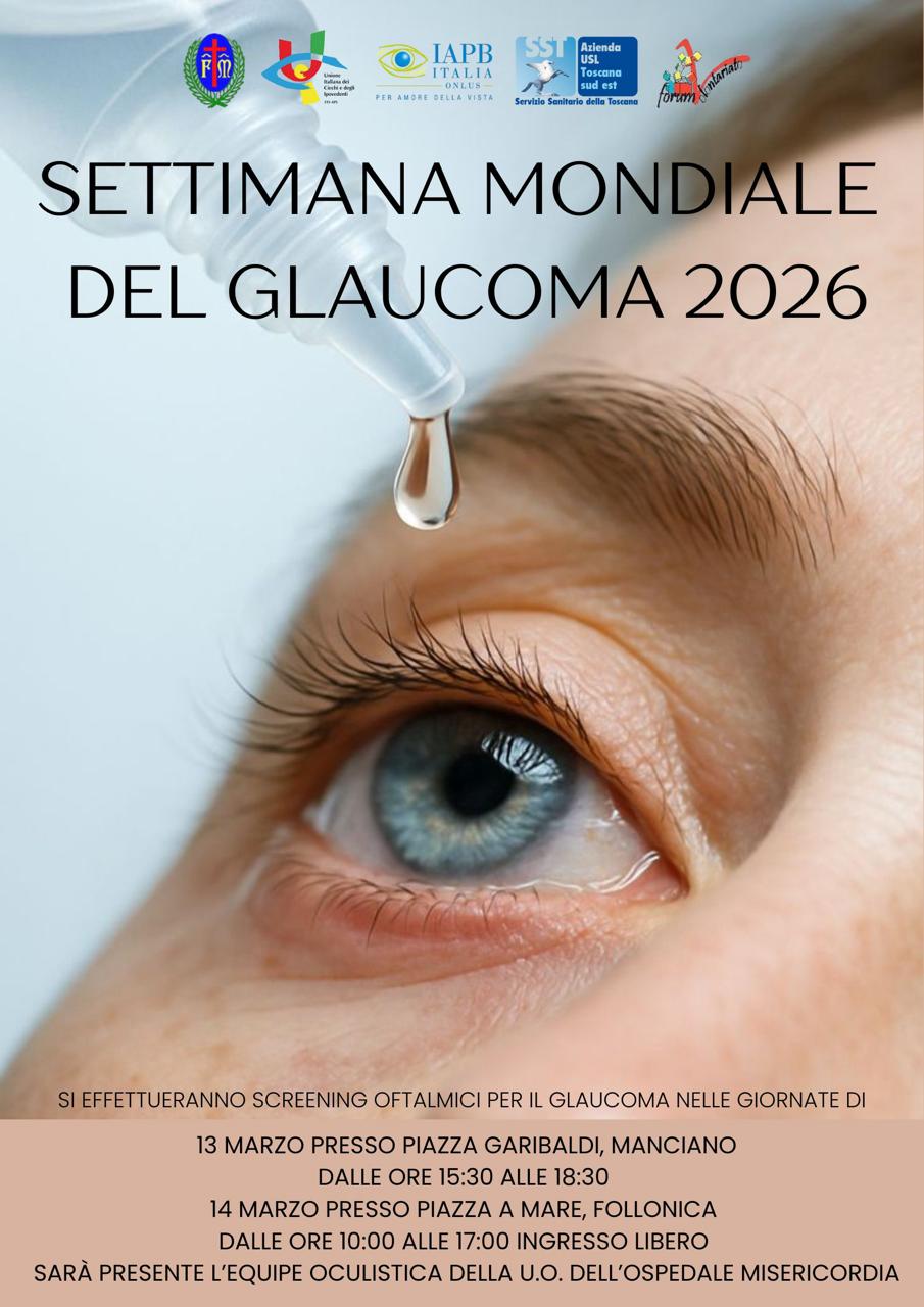 Anche la sezione territoriale di Grosseto è parte integrante di questo importante progetto, che si rivolge in particolar modo alle persone over 45, ed in collaborazione con la Fraternita di Misericordia di Manciano, ha organizzato per la giornata di venerdì 13 marzo 2026, dalle ore 15.30 alle ore 18.30, uno screening GRATUITO di prevenzione in piazza Garibaldi, dinanzi alla sede della Misericordia. Durante le tre ore pomeridiane, infatti, sarà presente il camper dell’Azienda USL Toscana Sud Est con a bordo personale medico, che provvederà all’effettuazione di test volti a rilevare la positività al glaucoma, una malattia cronica che danneggia il nervo ottico, la cui sintomatologia è difficile riconoscere. I partecipanti, inoltre, avranno la possibilità di consultarsi con i sanitari presenti, instaurando un dialogo volto a sensibilizzare ed informare i cittadini sulla patologia, aiutando in maniera concreta a riconoscerne i sintomi, così da agire il prima possibile.
